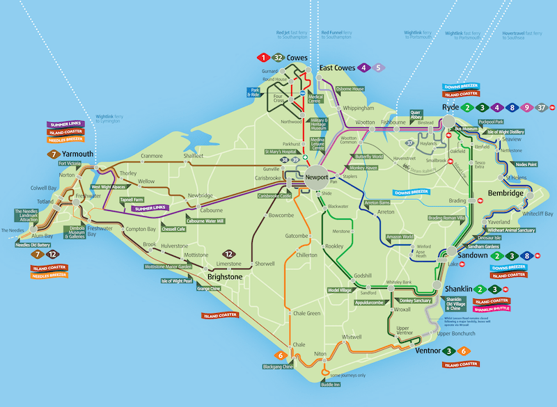 There’s now four buses an hour between Newport and East Cowes and a half hourly frequency between Newport and Yarmouth/Freshwater/Alum Bay and between Newport and Sandown via Arreton. An hourly frequency links Ryde and Bembridge and the same to East Cowes with less frequent timetables between Newport and Alum Bay via Brighstone and Ventnor via Chillerton.