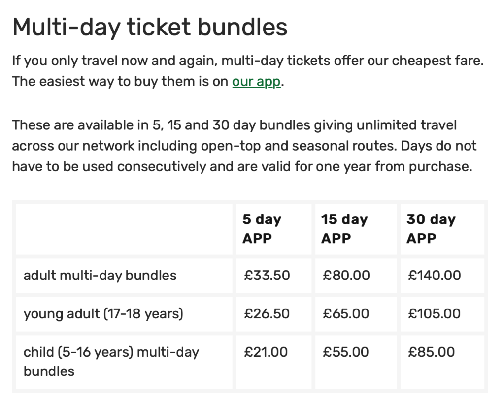 Although in many ways the Island is a very traditional place to visit and the bus network has now been stable for many years, Southern Vectis has shown it can trial new services and try out new developments. It was one of the first bus companies to offer Tap&Go including daily and weekly capping and also had very attractively priced bundles of day tickets aimed at giving residents a discount compared to visitors when it had smartcards.