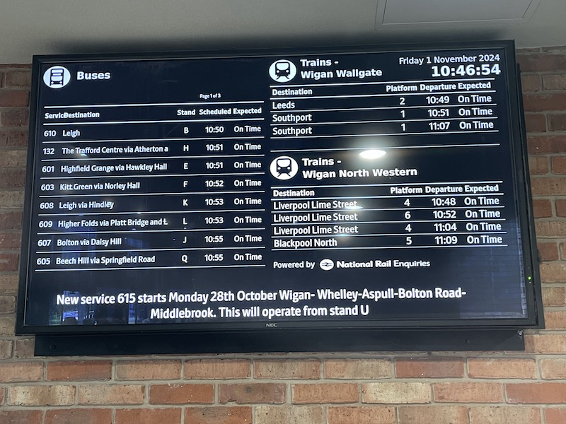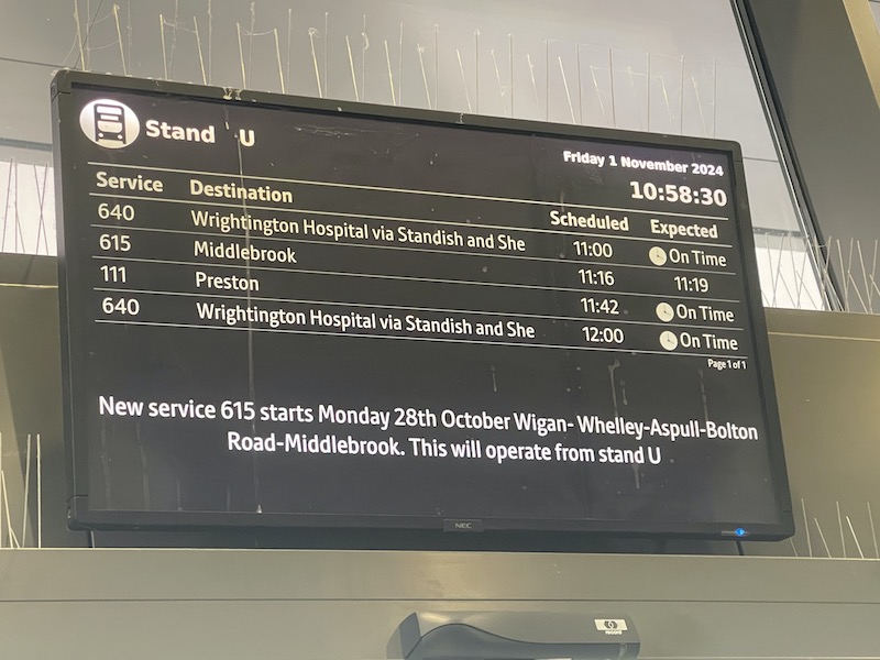 On the plus side there were printed timetable leaflets available in Wigan bus station…