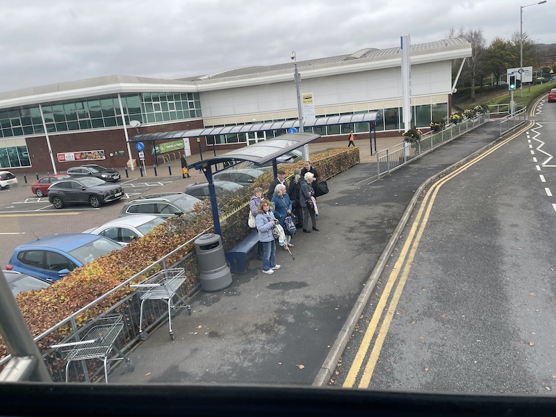 … after which we picked up a passenger who travelled to Aspull where another boarded for Horwich Parkway and two of the Wigan bus station foursome alighted at the retail park with the other two staying on the bus, as I did, for the return journey – I wonder if they were blogging about their journey too.