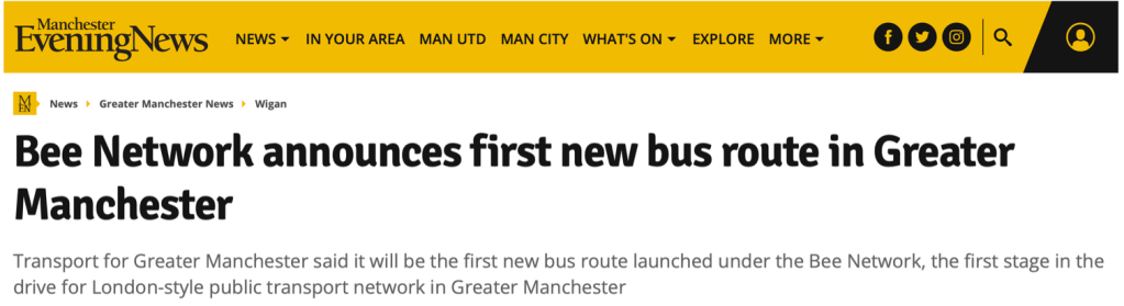This week has seen big Bee news in Greater Manchester. Mayor Burnham has been trumpeting the first new bus route added to the network since he took back control in September 2023.