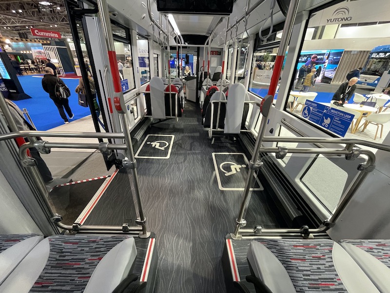 … but the area to accommodate two wheelchairs by the centre door offers more space albeit passengers using wheelchairs as well as those with large buggies and shopping trolleys won’t pass the ticket machine on boarding.