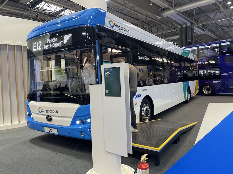 Over on the Pelican stand the company has two of Yutong’s electric buses on display. An E12 single deck destined for Stagecoach…