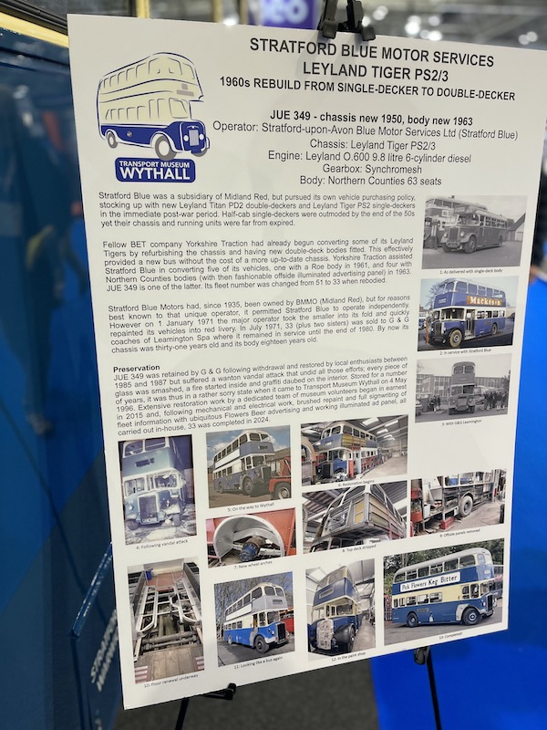 The Show also features many coaches from a whole host of manufacturers but I’ll leave the vehicle stands here other than to show it wasn’t all modern ‘state-of-the-art’ vehicles. A nod to nostalgia sees Stratford Blue Leyland Tiger PS2/3 from the Transport Museum Wythall on display…