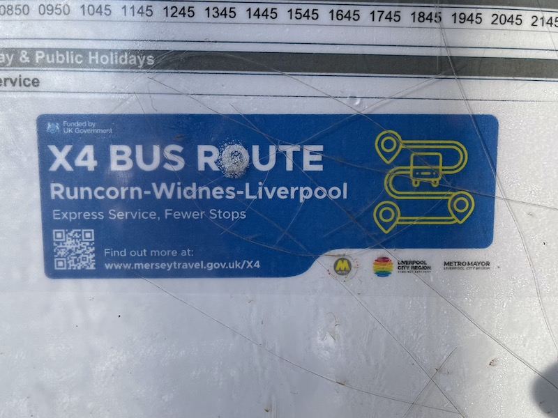It seems totally typical that the timetable in the case at the X4 start point in Runcorn is just one of the public issue ones, complete with “take this timetable with you”. With a message like that, any right-thinking yob would just smash the plastic and do exactly that.