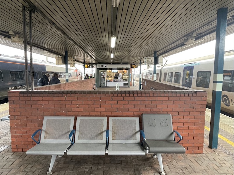 One fairly recent addition to North Western’s facilities is a digital indicator displaying the next bus departures from outside the station. It is sited almost below the train departures screen, but to one side. You’ll have missed it as it’s presently out of action and its screen is covered with a large paper apology. It appears to be just visible in your interior photo of the entrance hall, to the right of the water dispenser. However, even if working it is of limited/no value to passengers arriving by train as it is invisible to them, mounted as it is in a corner facing the entrance door. A grudging recognition of the existence of valuable bus connections.