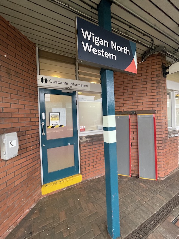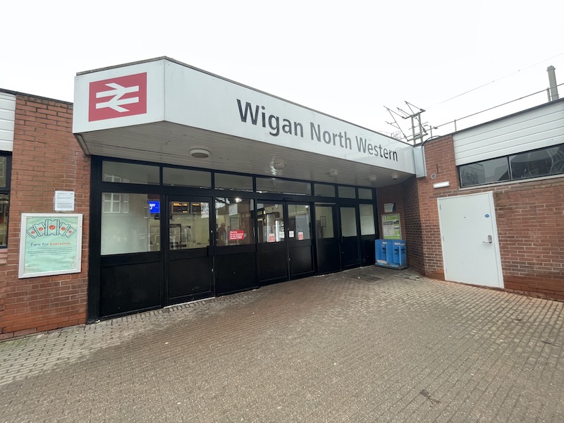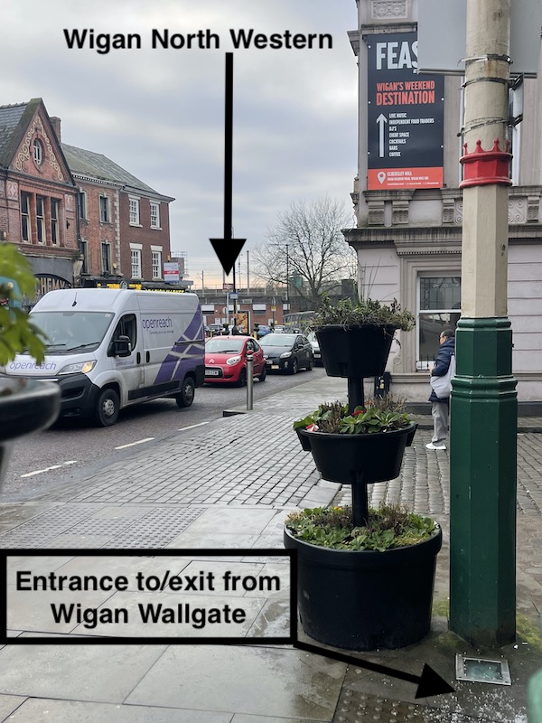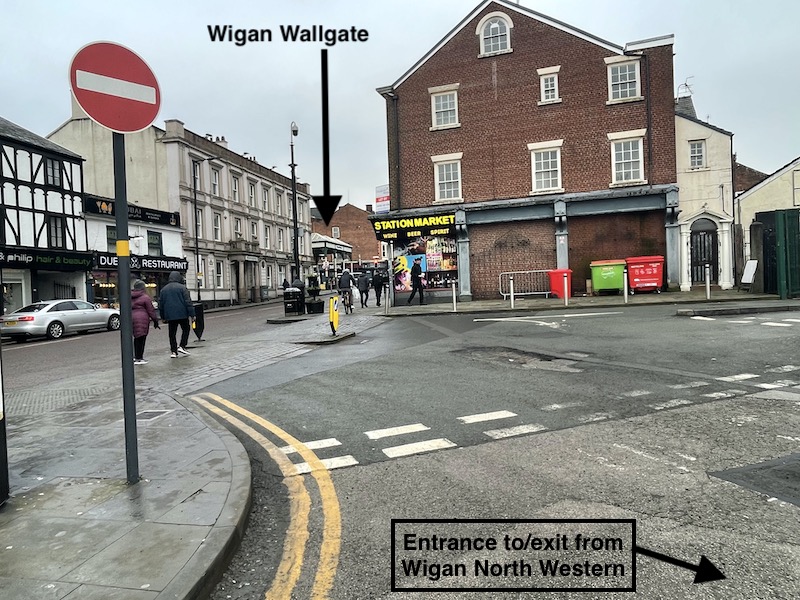 The lack of a double-arrow totem outside Wigan Wallgate is interesting.
