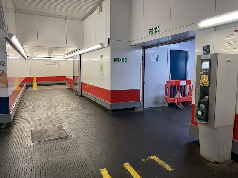…with a former goods lift to the left of the stairs, upgraded to take passengers which has a separate access to and from the street separate from the gateline.