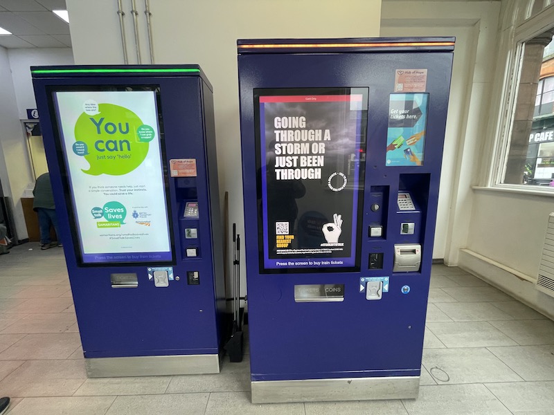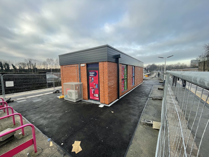A two window ticket office is supplemented by a large size ticket machine…