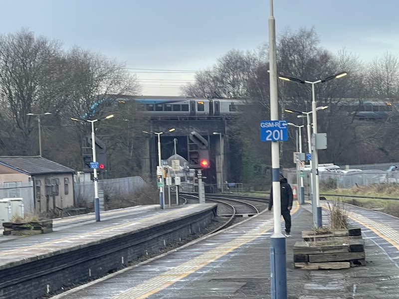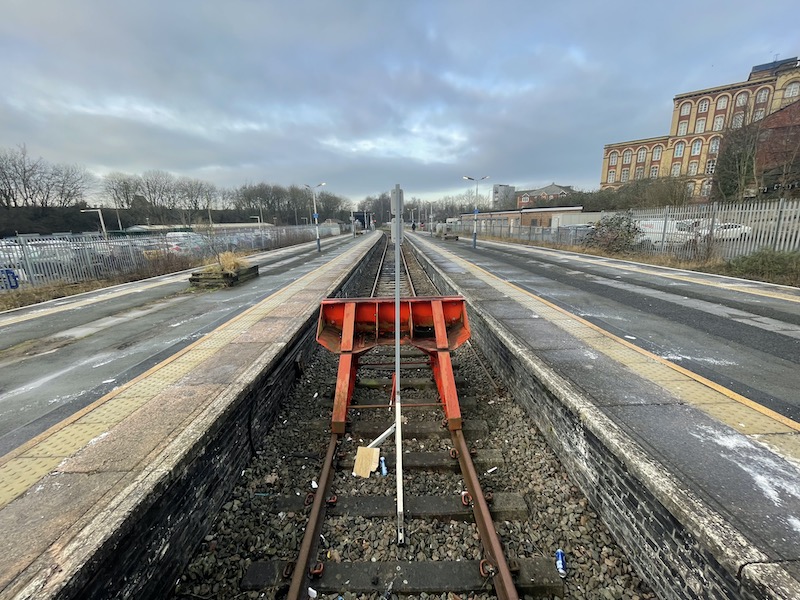 … but ironically trains from those destinations operate through towards Manchester. The hourly terminating train comes from the Manchester direction so sets down passengers on platform 1 before proceeding to sidings and returning just over an hour later to depart from platform 2.