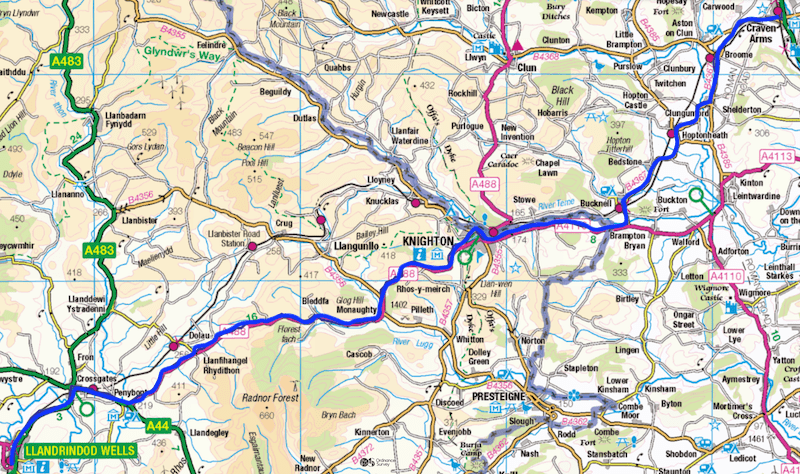 The bus on route X48 follows the railway line for much of the way with stations at Broome, Hopton Heath, Bucknell, Knighton, Dolau and Pen-y-Pont served along the route and just three stations by-passed. All the 10 stations are by request other than Knighton.