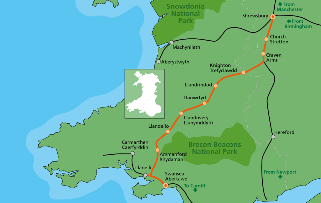 I’m guessing the assumption is passengers can connect at Craven Arms with trains on the Welsh Marches line which runs between Newport/Hereford and via Craven Arms to Shrewsbury and Wrexham/Crewe.