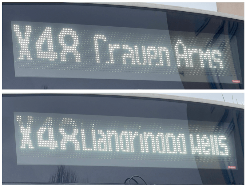… compared to Powys County Council who has its name and logo on the side and front of the bus.