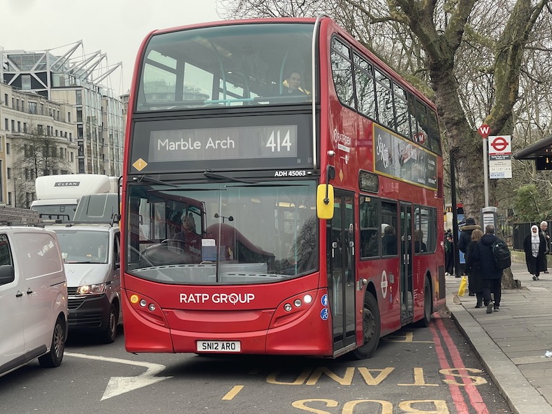 Hot on the heels of TfL squeezing nine buses out of bus provision between Elephant & Castle, Camberwell Green, Brixton and Morden (it’s 45/59/118 scheme introduced on 1st February) comes another reduction in service provision this Saturday, when route 414 is withdrawn without replacement. It runs between Putney Bridge and Marble Arch supplementing long standing route 14 over the same section of route via Fulham, South Kensington and Knightsbridge as far as Hyde Park Corner with the short stretch up Park Lane to Marble Arch covered by a multitude of other routes.