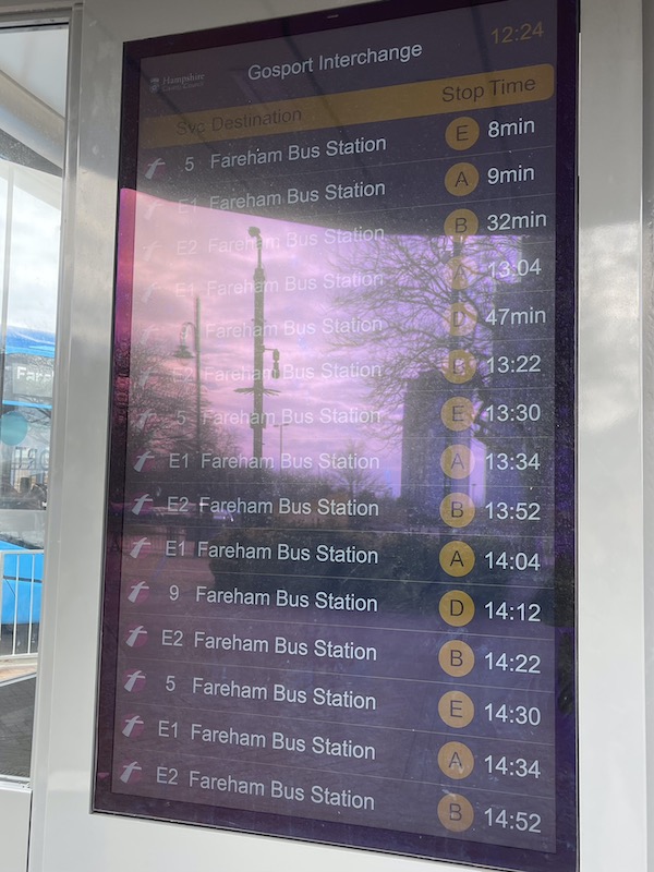 I am quite surprised that Gosport’s bus passengers have only Fareham, Fareham, Fareham or Fareham as a choice of destination.