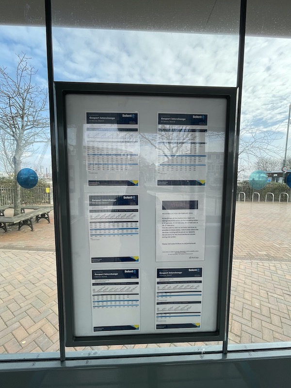 It’s a pity the electronic departure board at Gosport says “Fareham Bus Station” against every single departure. True but unhelpful. It should have a second line for each saying “via…”. Also drivers are unhappy about lack of rest room facilities at the new Gosport Bus Station, the main bone of contention sparking recent strikes.