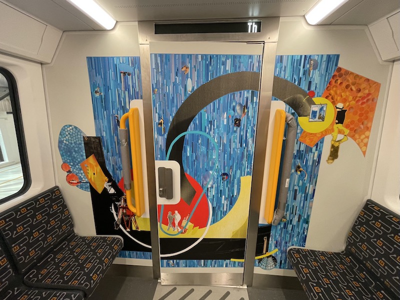 Each train also has one of four designs commissioned from local artists to brighten up the ends of coaches one and five by the internal door to the driver’s cab.