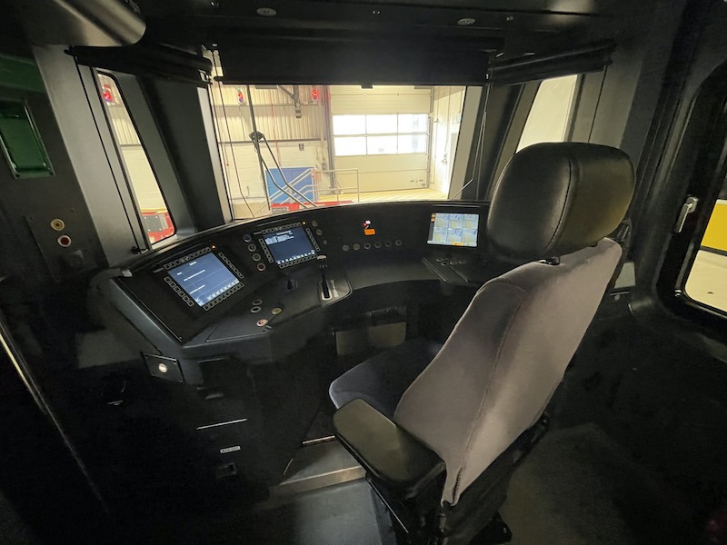 The drivers cab has screens to show the status of the train’s electrical systems and other information…