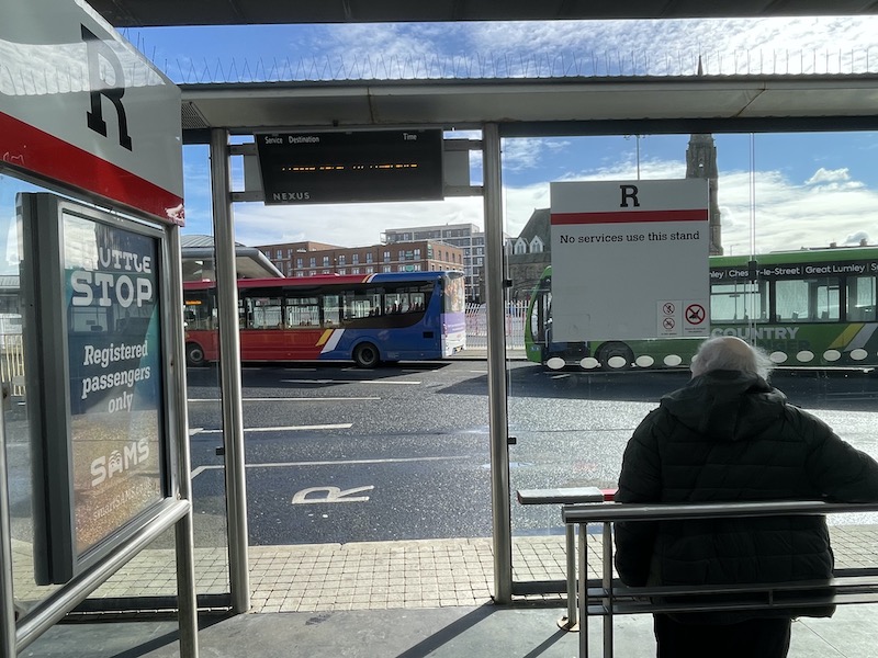 I sampled the 13:00 departure which was immediately after Anthony and Neil’s break and the bus pulled on to stand R which has been reactivated from normally being out of use for the purpose of the trial.