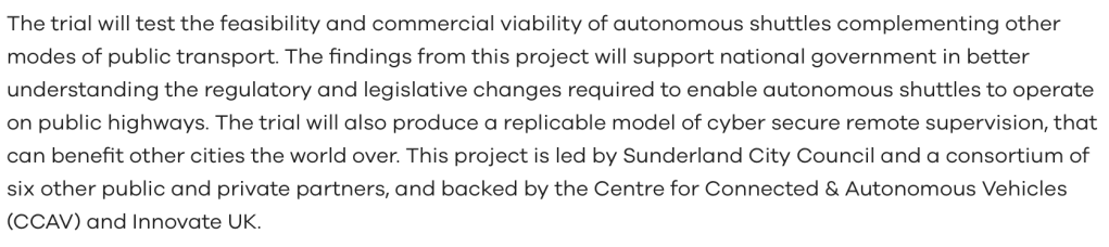 It was the Aurrigo company representative involved in the Milton Keynes trial in November 2023 who tipped me off about the upcoming Sunderland trial which at that time he said was expected to launch in Spring 2024.