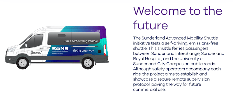 The City Council has called the project SAMS which stands for Sunderland Advanced Mobility Shuttle. It sits alongside 31 “Innovation Challenges” the city has embarked on.