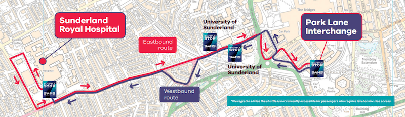 The SAMS trial is along a one and a half mile route through the city centre from Sunderland’s large Park Lane Interchange via the University of Sunderland City Campus over to the Royal Hospital site.