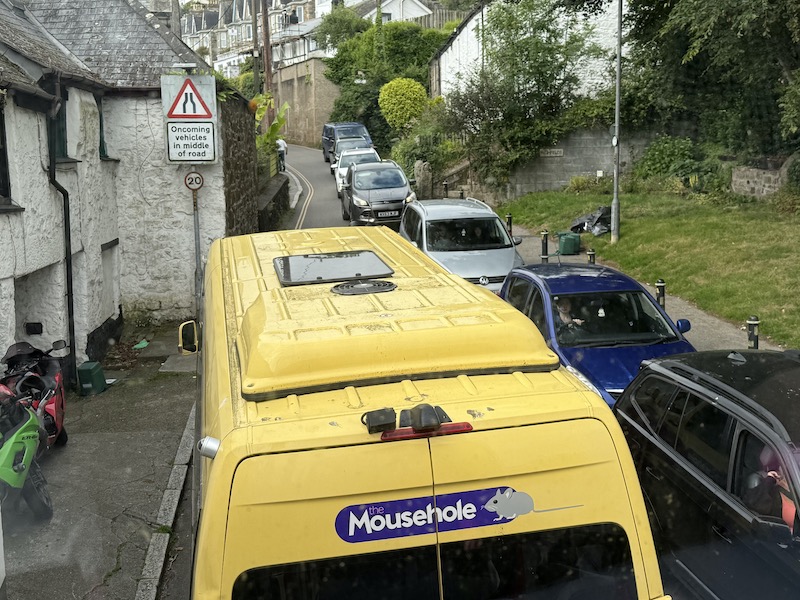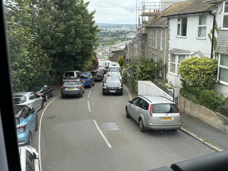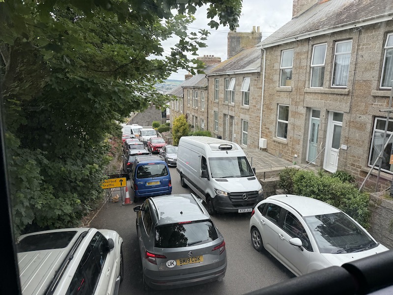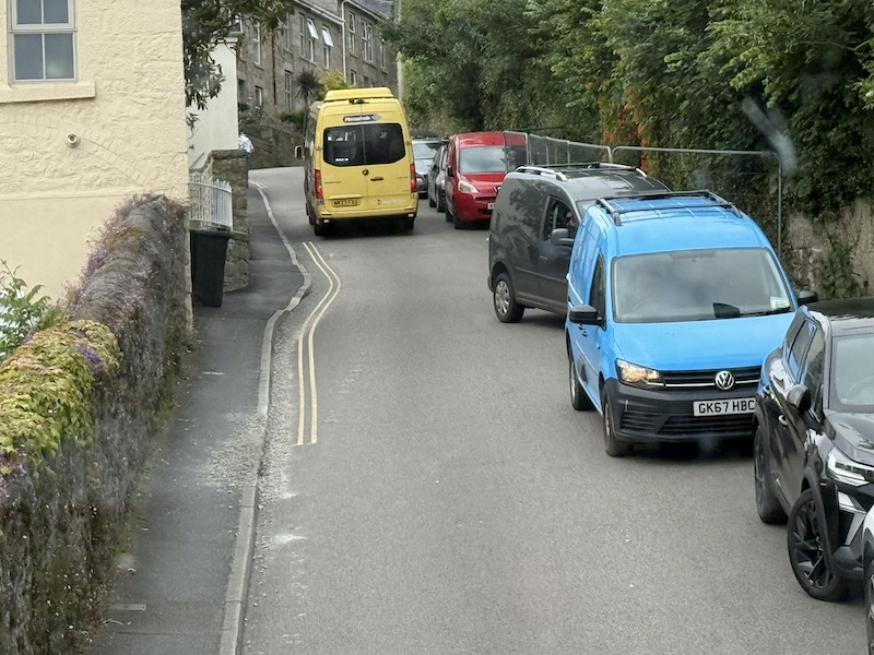 Quite why Cornwall Council hasn’t restricted parking along more of the road during this diversion is beyond me. Look at this car parked to cause maximum disruption.