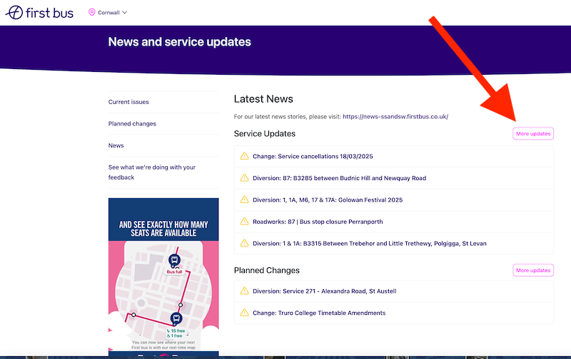 It has been mentioned that Cornwall is supposed to be a model of an enhanced partnership. Unfortunately it seems that this does not cover who is responsible for informing customers when there are known diversions and disruptions. I guess this may depend on where the revenue is going – if it all goes to TfC then First will have little incentive to maximise it.