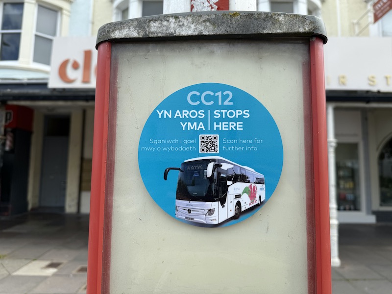 … but it looked as though a sticker with a QR code linking to a webpage about the route had been added promoting the CC12 (annoyingly covering up other information in some cases) but with no departure times displayed at the stops.