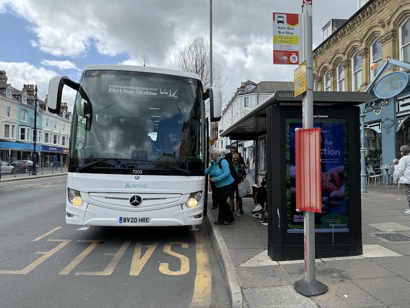 I gave the route a try out on Monday, its first weekday, taking the 13:00 departure from Rhyl. The coach arrived in the bus station, sited alongside the town’s railway station, on time at 12:53 from its previous journey with three passengers alighting.