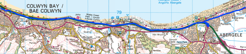 … followed by a six mile, seven minute non stop run along the A55 North Wales Expressway between Abergele and Pensarn station and Colwyn Bay station…