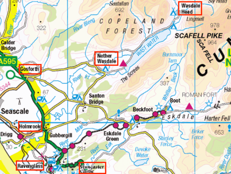 The AA route finder gives a journey distance of over 17 miles from Ravenglass to Wasdale Head.