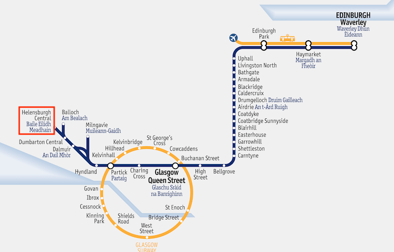 But, as you can see from the above map, the ‘separate lines’ serving Helensburgh Central and Helensburgh Upper only diverge from each other just over a mile east, towards Glasgow, by Craigendoran station on the eastern edge of Helensburgh, which although not clear on the map, is only on the line to and from Central.