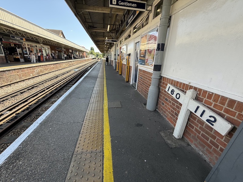 It’s unusual to see one of these signs in the middle of a platform. But you can at Kingston.