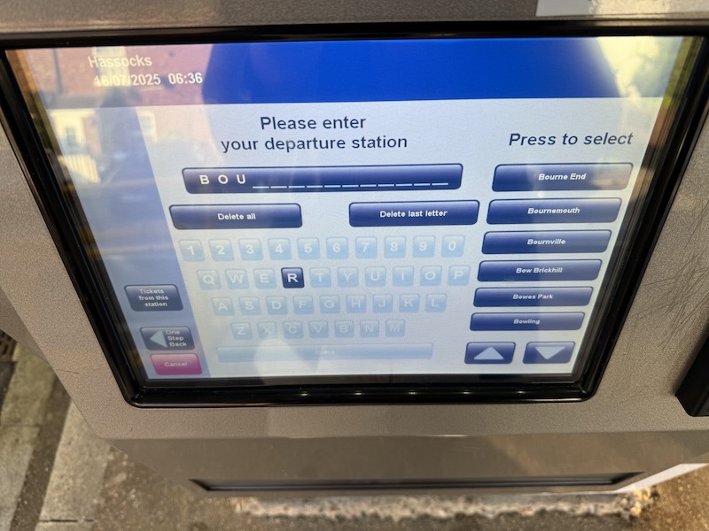 It works out cheaper than buying a return from Hassocks to Letchworth Garden City. And I have the flexibility of travelling all over London for the day. The problem is, when the ticket office is closed, despite what Southern say, their TVM’s won’t allow you to buy a ticket from the Zone 6 Boundary to another destination, such as Letchworth.
