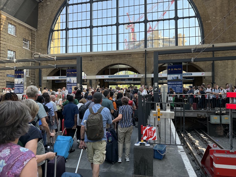 Finally arriving into King’s Cross station over an hour late passengers were met with organised chaos as other passengers waiting for trains at the end of platforms 0-4 had been herded into an area by half the ticket gates while the other half were left open to try to clear those arriving on grossly delayed trains.