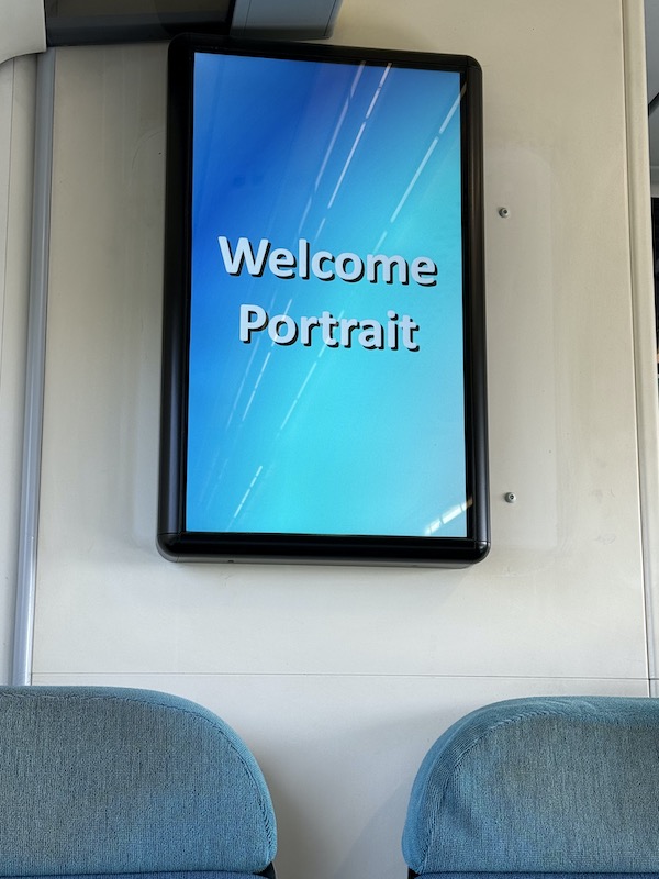 A £100 million upgrade has seen Southern’s Class 377/387s fleet nicely refurbished including much welcome usb/plug sockets and electronic poster displays which usually feature promotional adverts to do with Southern but I noticed one the other day just displaying a “Welcome Portrait”. It made me feel welcome.