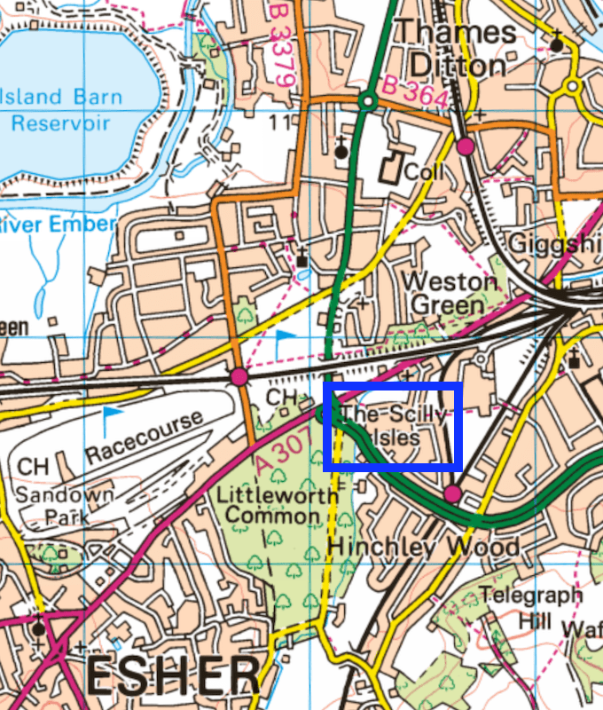 So, I was on White Bus’s route 458 heading towards Staines-upon-Thames when much to my surprise up pops the next bus stop being the Scilly Isles. It’s in Hinchley Wood between Thames Ditton and Esher, and not to be confused with the Isles of Scilly. That would just be silly.