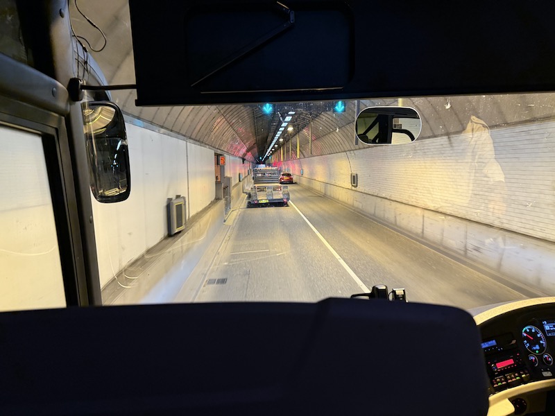 It’s not easy driving a large vehicle like a Neoplan Tourliner through the narrow twisty lanes in the tunnel…