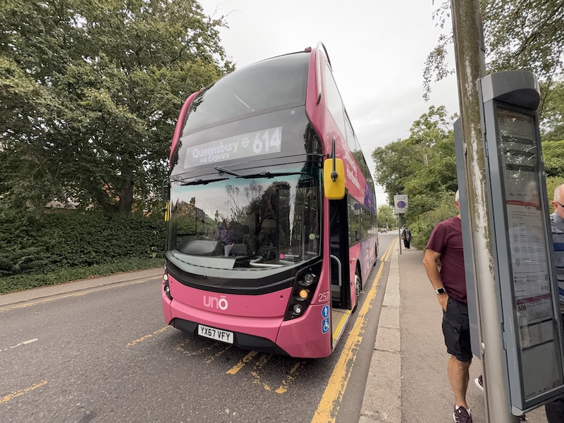 However, our next bus back south to cross the border again, on route 614 to Barnet, Edgware and Queensbury, despite it being holiday time, had a good dozen or more students on board and I understand during term time gets very well used to the extent buses become full.