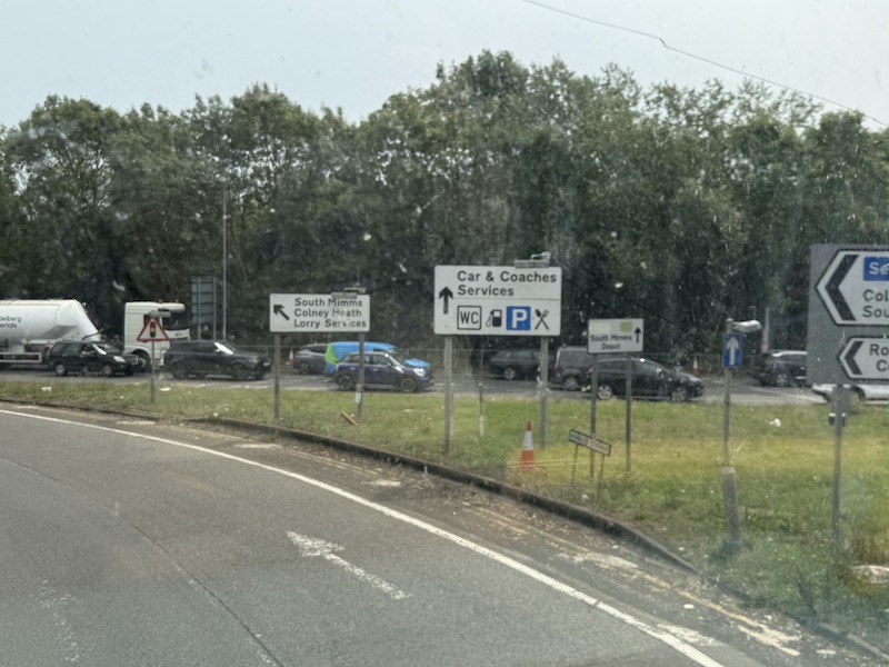 Back on the 614, we enjoyed a fast journey down the A1(M) to South Mimms from where the route retraces the former London Transport route 84 to Barnet (and beyond to Arnos Grove) on what is now the A1081 and along which there’s not a lot until reaching Barnet where the bus takes the back road via The Spires to Wood Street (towards Elstree) and where we noticed that busy road had been closed for emergency roadworks, thankfully just east of where we joined.