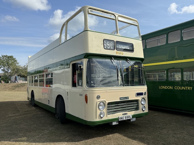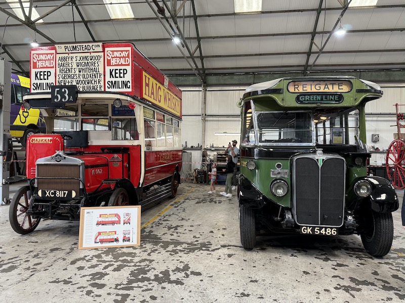 Back in the garage pride of display place went to two special visitors. A K-type as used by East Surrey on local routes S1 and S7 (forerunners of the 401 and 407) from Swanley in the 1920s. This bus, K502, was allocated to East Ham and Old Kent Road garages of the London General Omnibus Company (LGOC) and is owned by B Weatherhead who restored it after it had been used as a hen house on an egg farm. Next to that was a T-type used by the LGOC on the first Green Line routes in the 1930s. It’s now owned by the London Transport Museum.