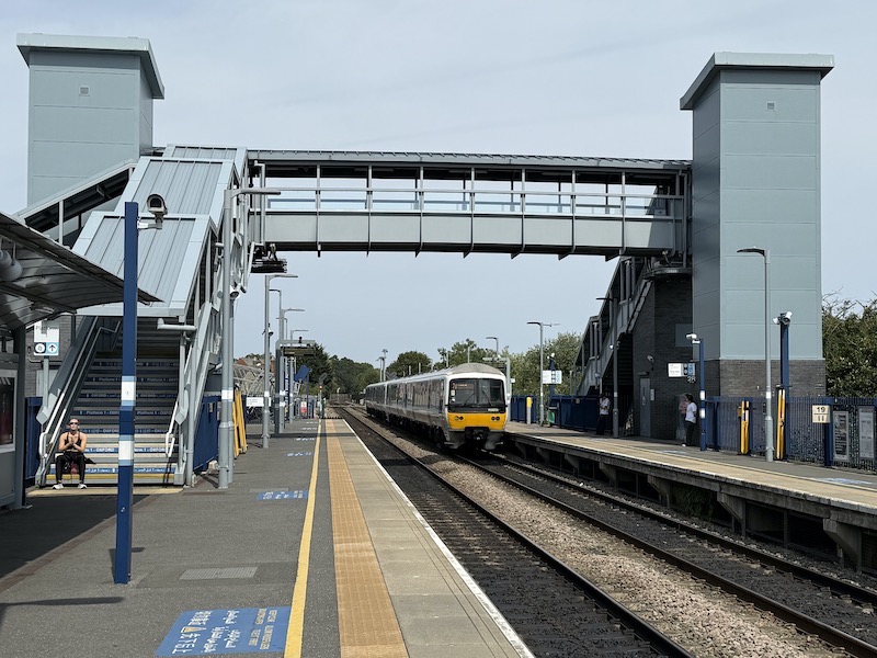 … and a traditional footbridge (with lifts added in more contemporary times) taking you over to the southbound platform 2.
