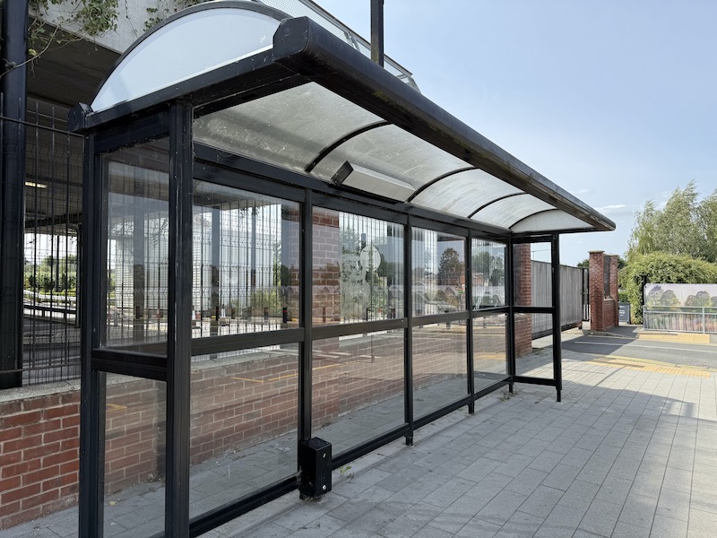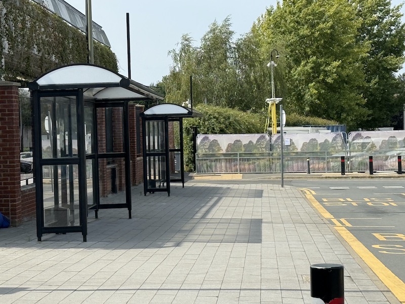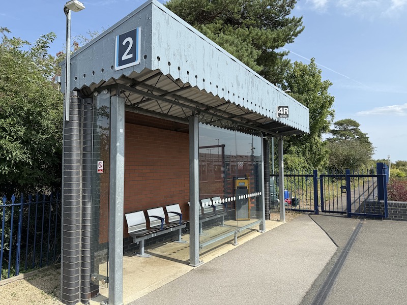 As you can see there’s no shelter provision for multi modal passengers making an integrated journey whereas at Bicester Village there are two shelters immediately outside the station entrance/exit…