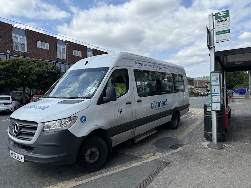 Three minutes after that unhelpful response telling me to go away, sure enough, a Surrey Connect branded minibus arrived at the bus stop as scheduled.