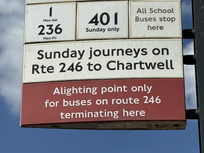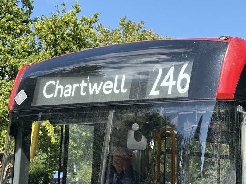The bus system in the area is rather an enigma—four routes serve Chartwell, yet only the 246 is more recognised. One also wonders: are there truly no public footpaths through the fields or woodland offering a safer, more scenic pedestrian route from the Mapleton Road stop to Chartwell, even if it required a longer walk?