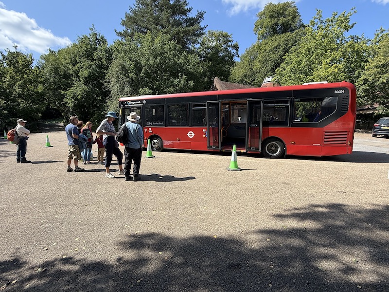 The bus has six minutes layover before returning to Bromley at 12:24 with seven people waiting and boarding presumably having spent either an hour or two hours taking a tour of the property and gardens.