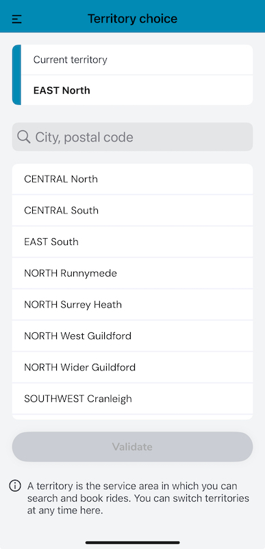 As you can see from the heading you need to be sure you use the “East north territory” on the Surrey Connect app, as it’s no good trying to book a journey to Chartwell in one of the eight other territories on the app, as that won’t work.