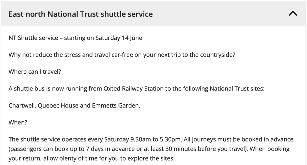 But, at least it mentions buses. Many visitor attractions don’t, assuming everyone will arrive by car.