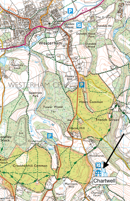 It only took four minutes to reach Chartwell along the B2065 and the narrow country lane…